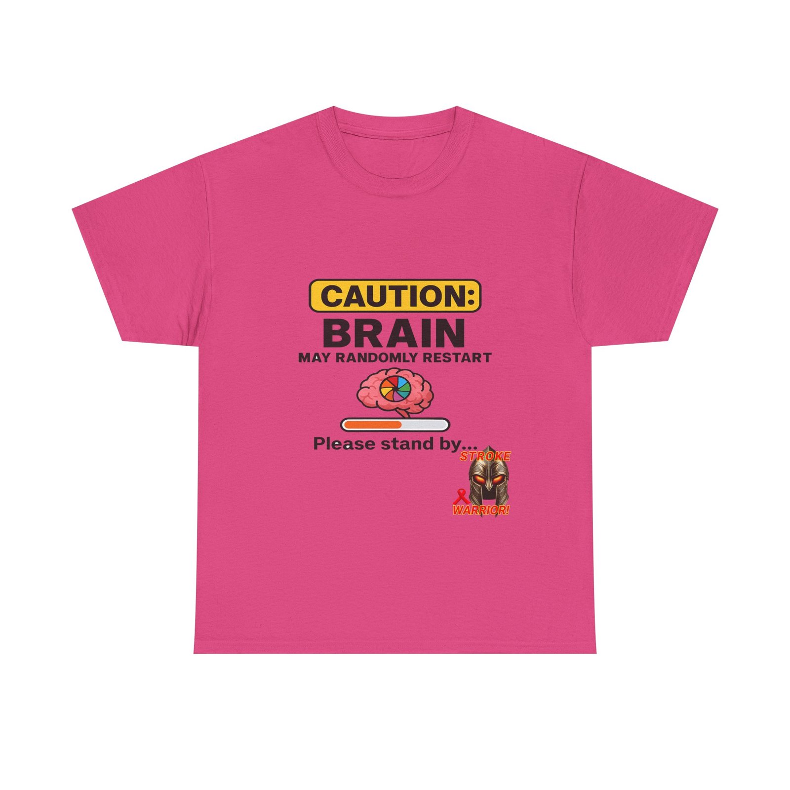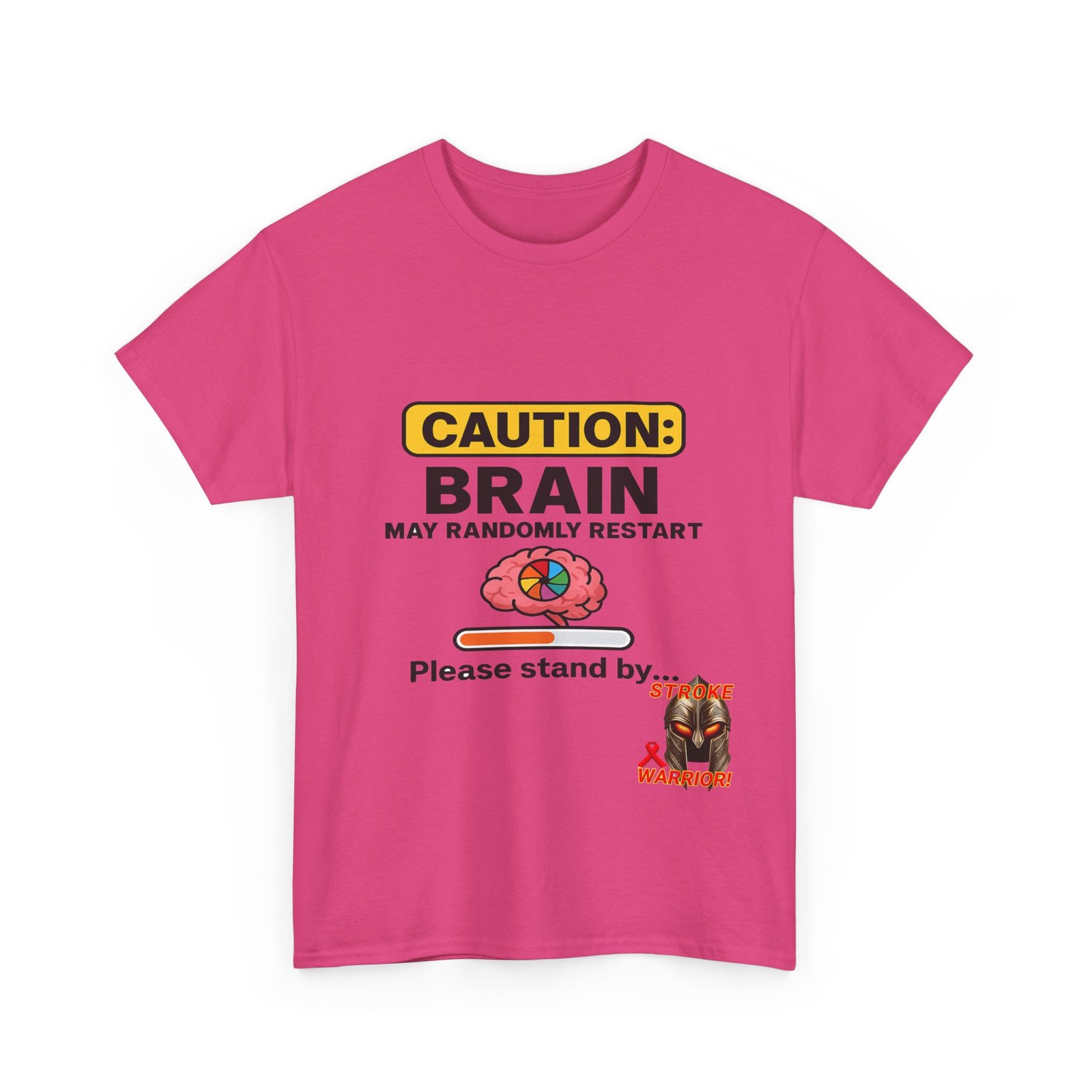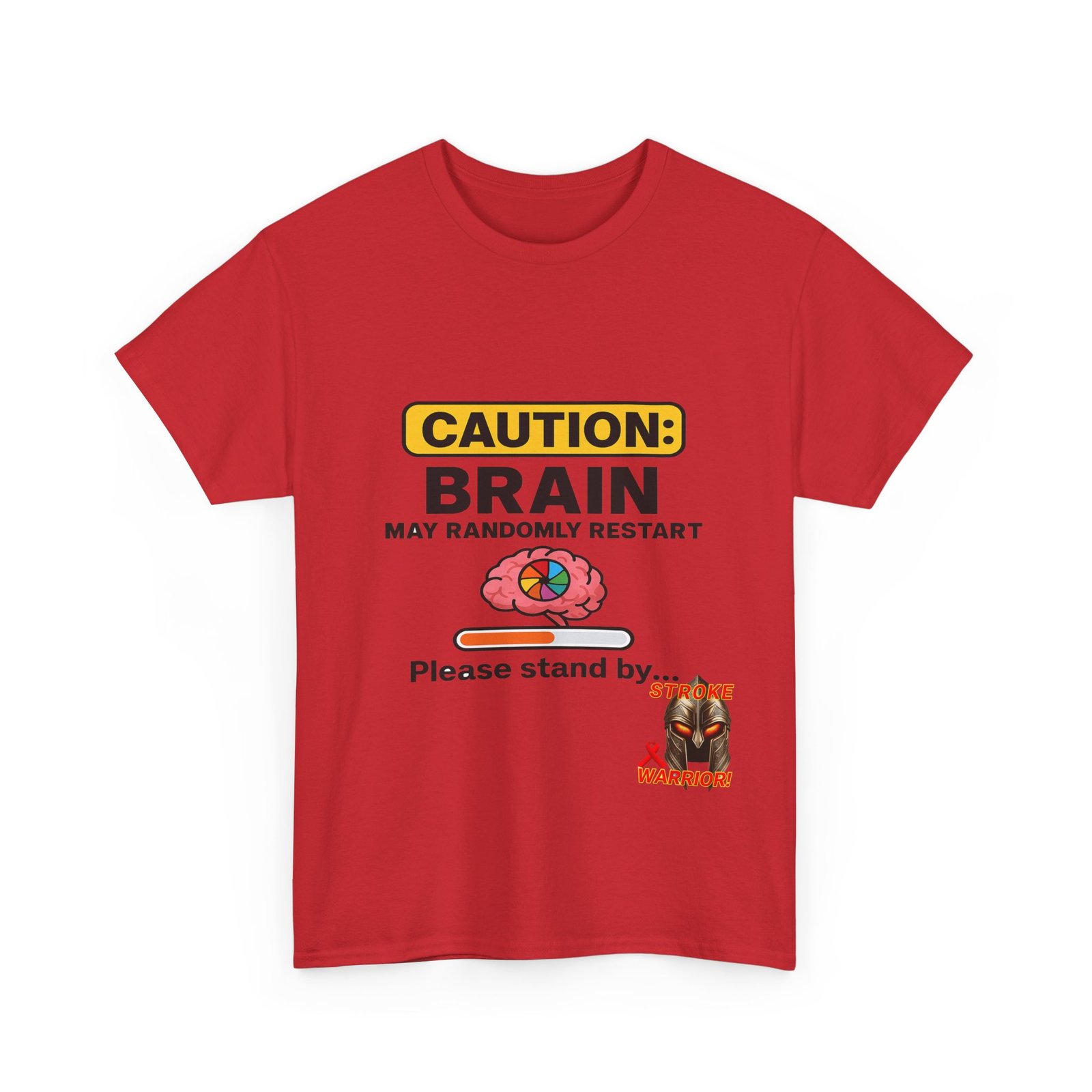 Introducing the “Caution: Brain May Randomly Restart” stroke survivor t-shirt — the perfect mix of humor, resilience, and truth. Whether you’re a stroke warrior yourself or looking for the perfect stroke survivor gift, this tee makes a powerful, personal, and humorous statement. Designed with a cartoon brain, a loading bar, and a classic spinning wheel, it’s a lighthearted way to represent a serious journey.