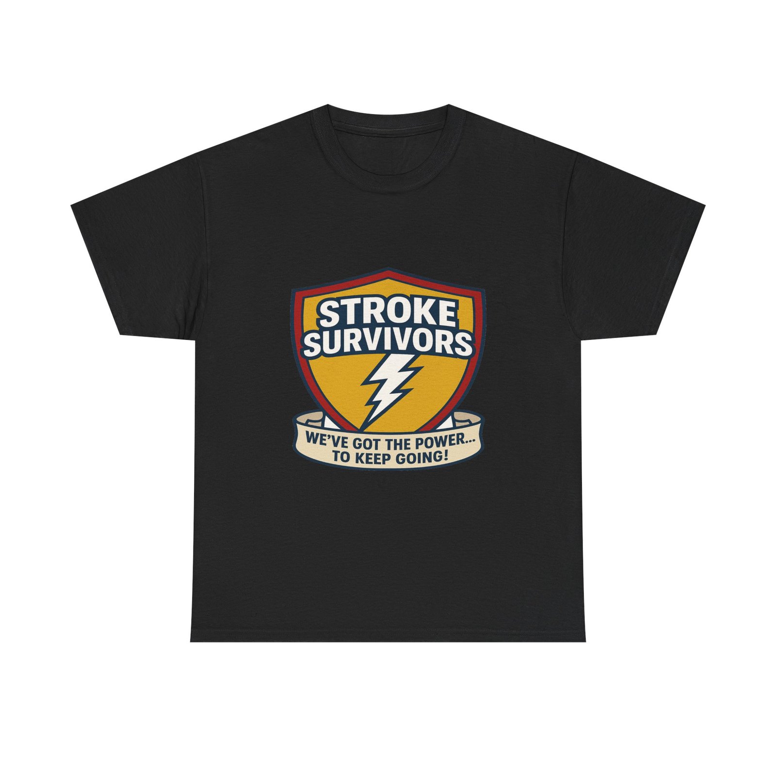 Stroke- Survivors- Shield- T-Shirt – “We’ve- Got- the- Power- to- Keep- Going!