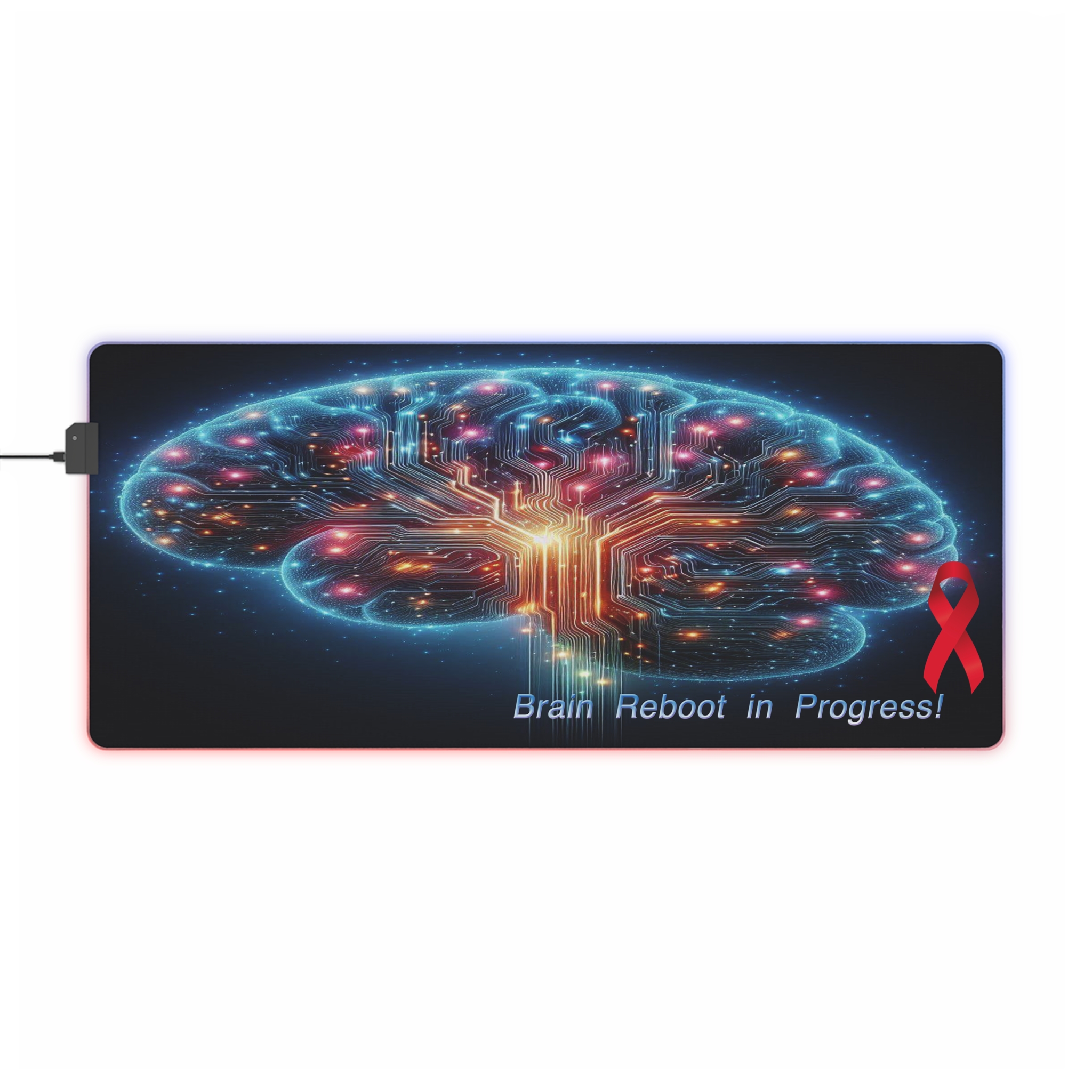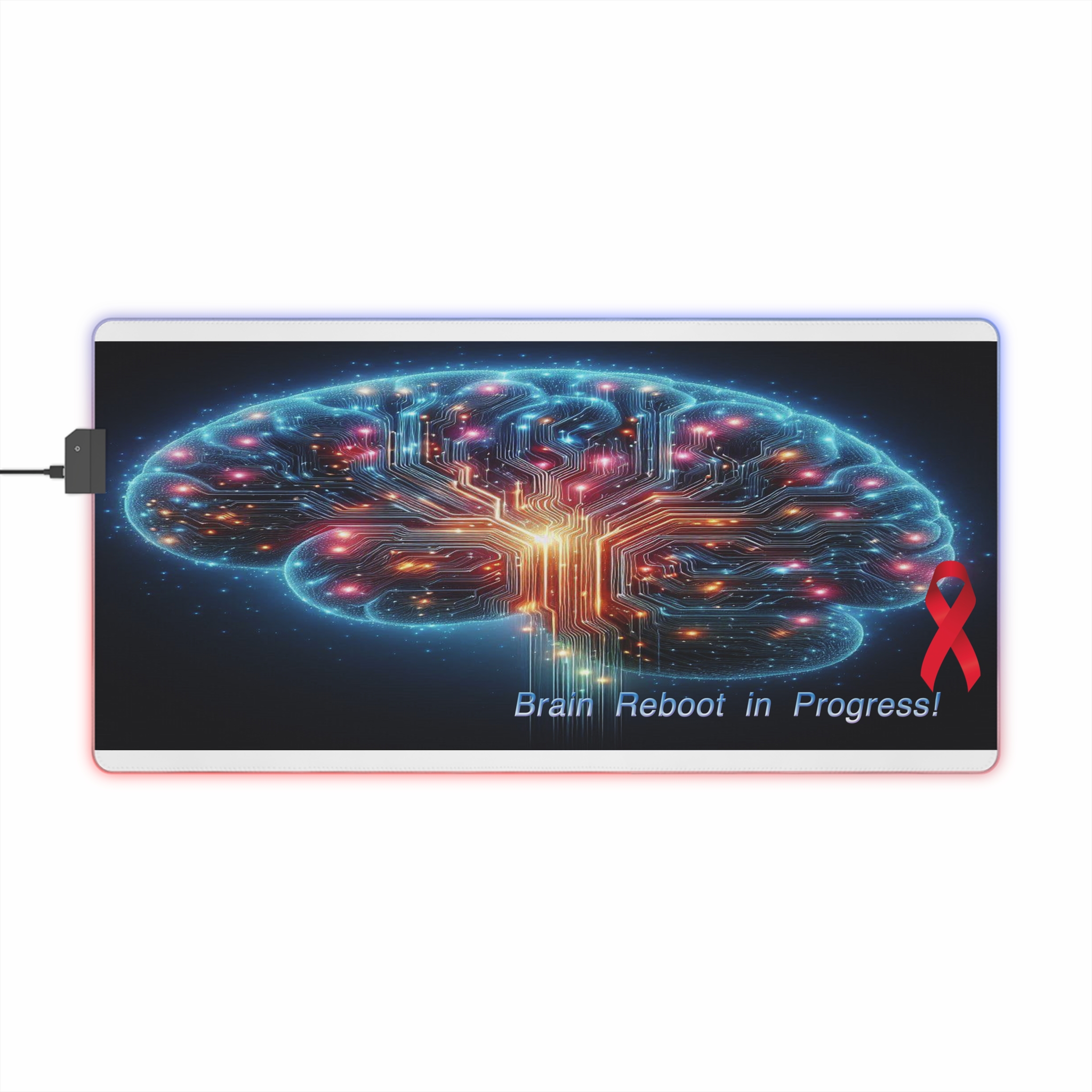 With vibrant LED lighting around the edges, this mat adds a sleek touch to any desk setup, offering both a smooth surface for your mouse and a symbol of resilience. It makes an ideal *stroke survivor gift* or *stroke warrior gift*, combining technology and motivation in one powerful design. Whether for personal use or as a thoughtful gift, the *Brain Reboot in Progress* desk mat is perfect for empowering your daily journey toward healing.
