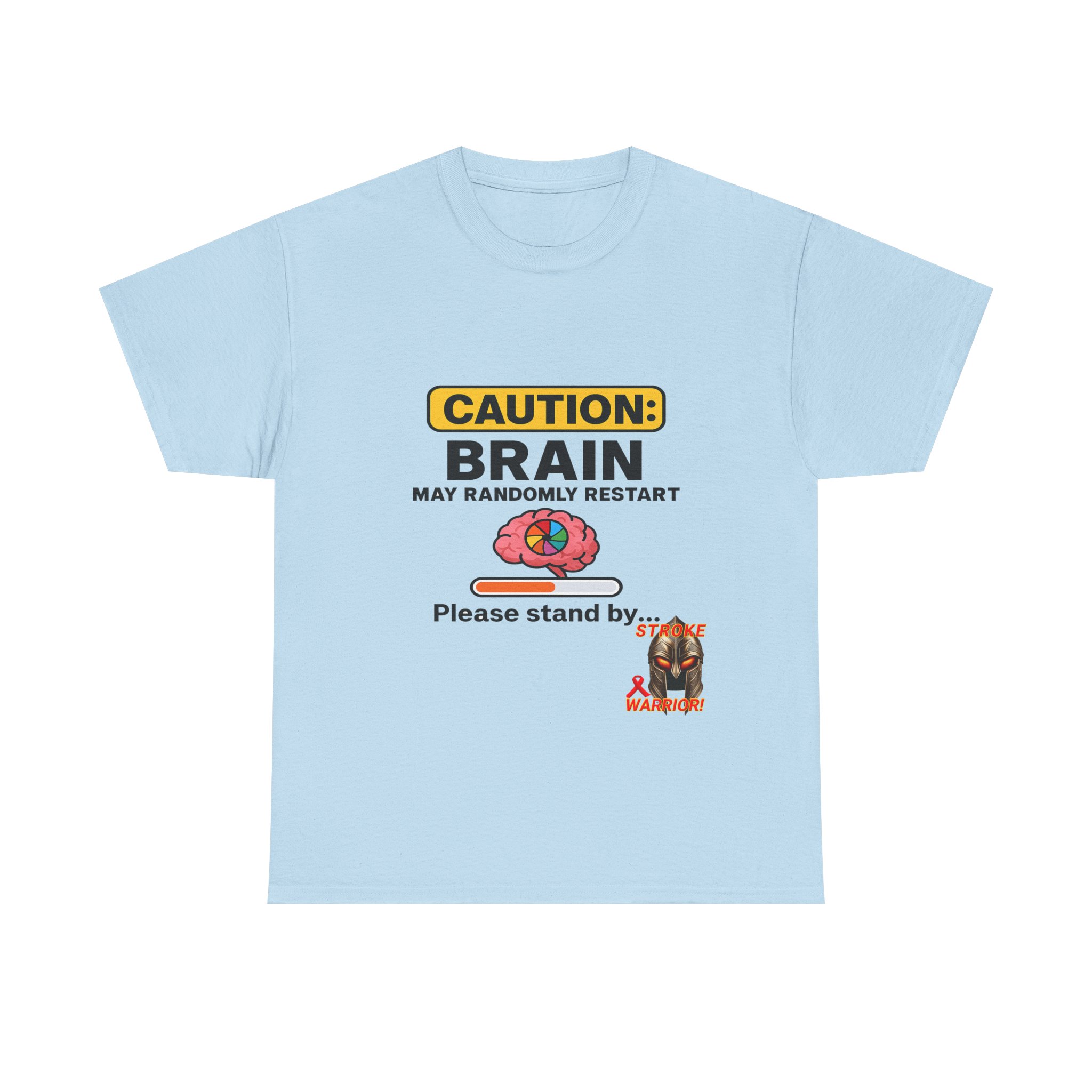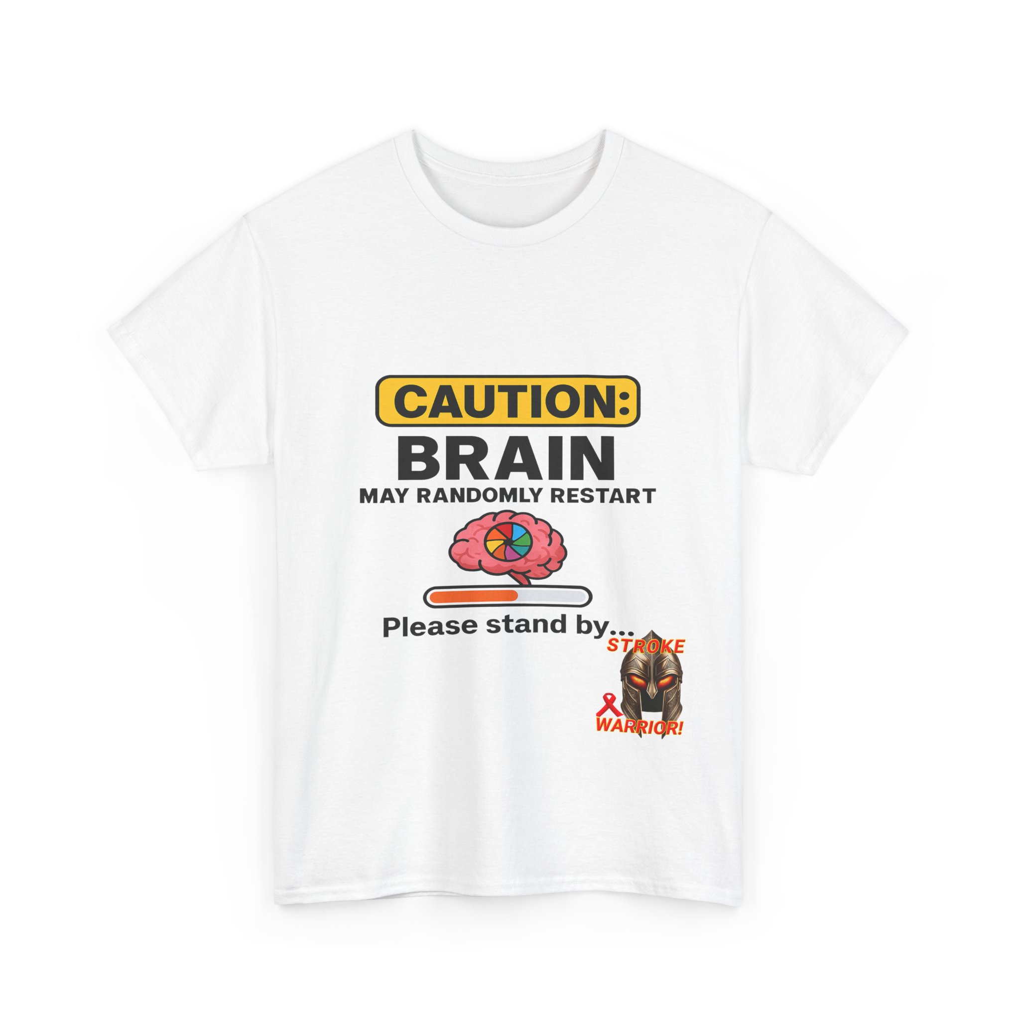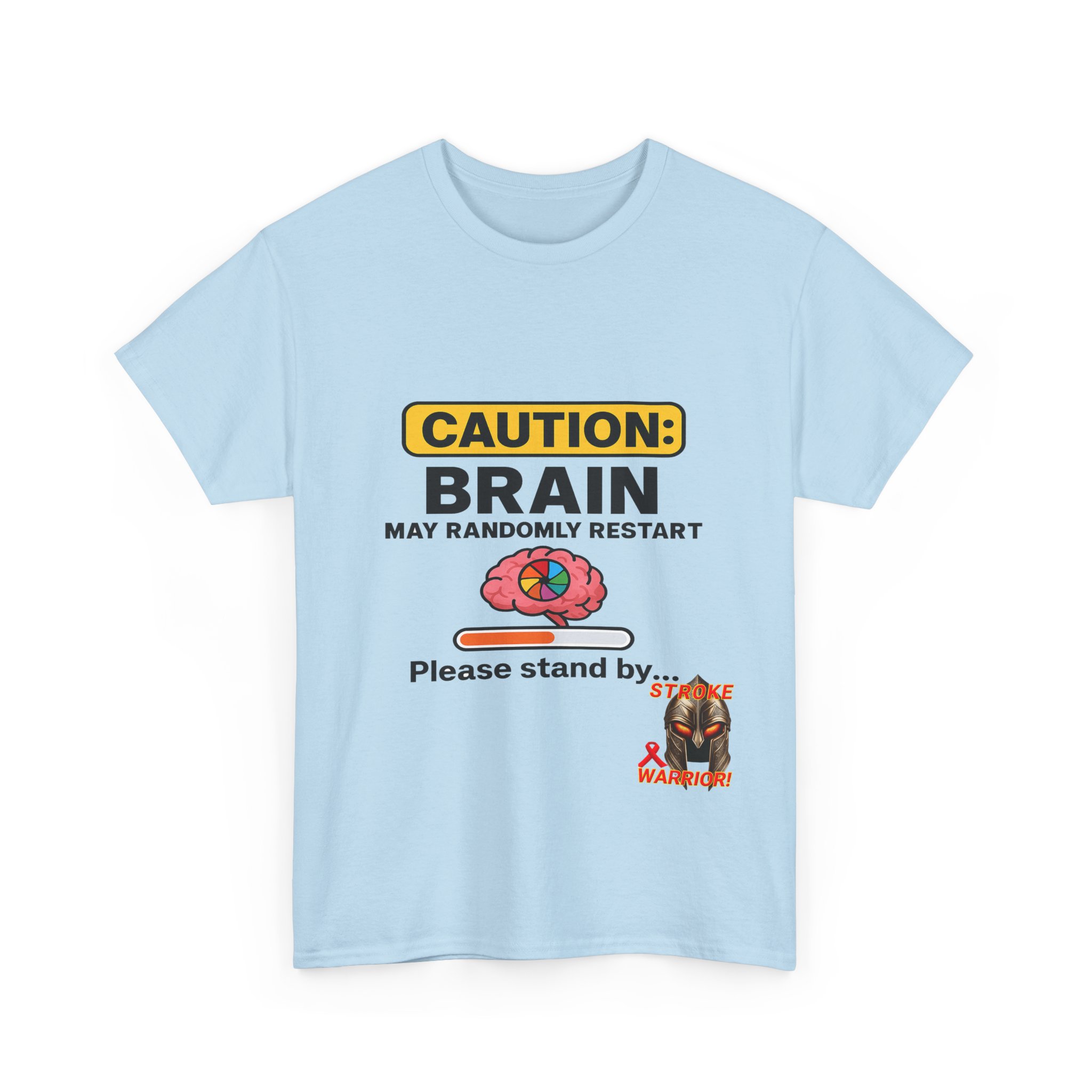Introducing the “Caution: Brain May Randomly Restart” stroke survivor t-shirt — the perfect mix of humor, resilience, and truth. Whether you’re a stroke warrior yourself or looking for the perfect stroke survivor gift, this tee makes a powerful, personal, and humorous statement. Designed with a cartoon brain, a loading bar, and a classic spinning wheel, it’s a lighthearted way to represent a serious journey.