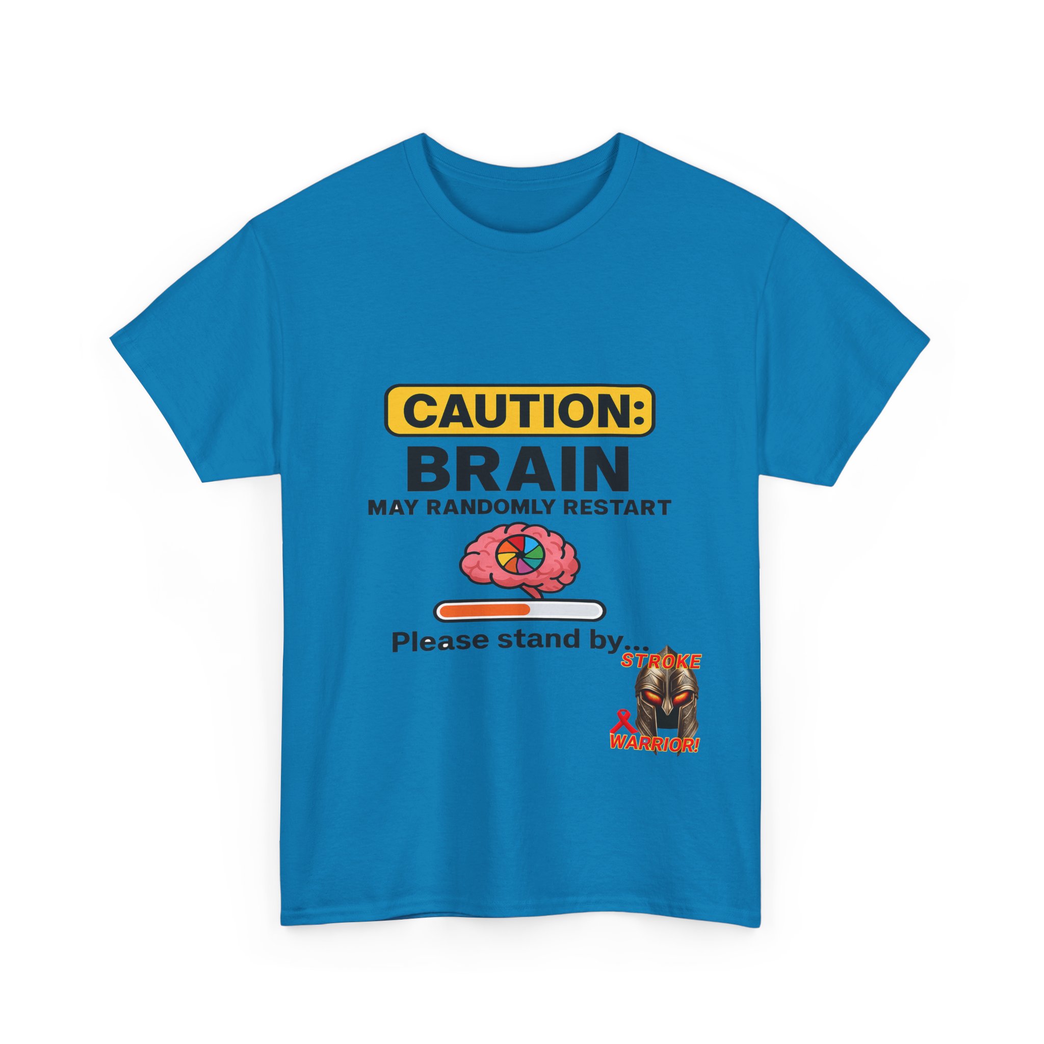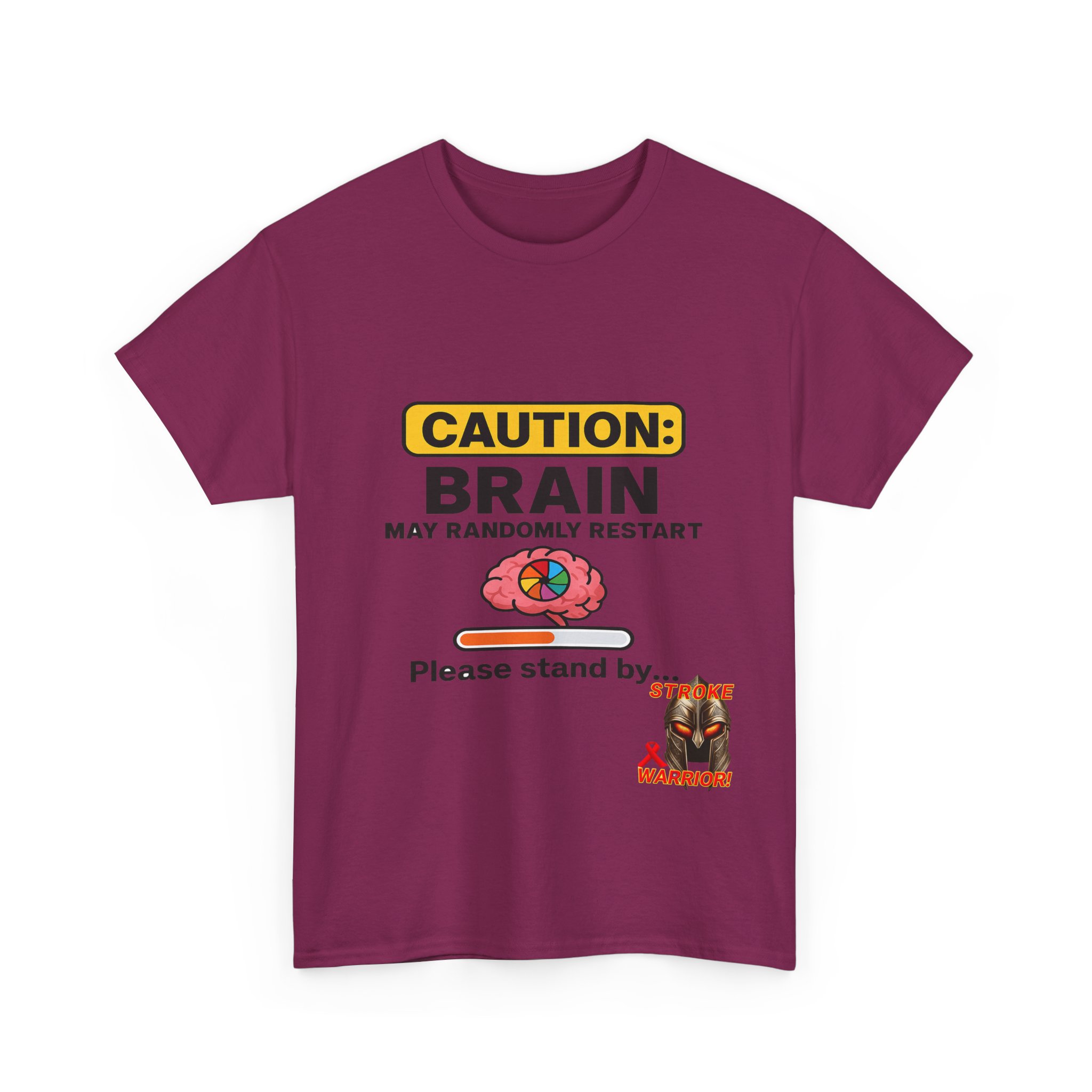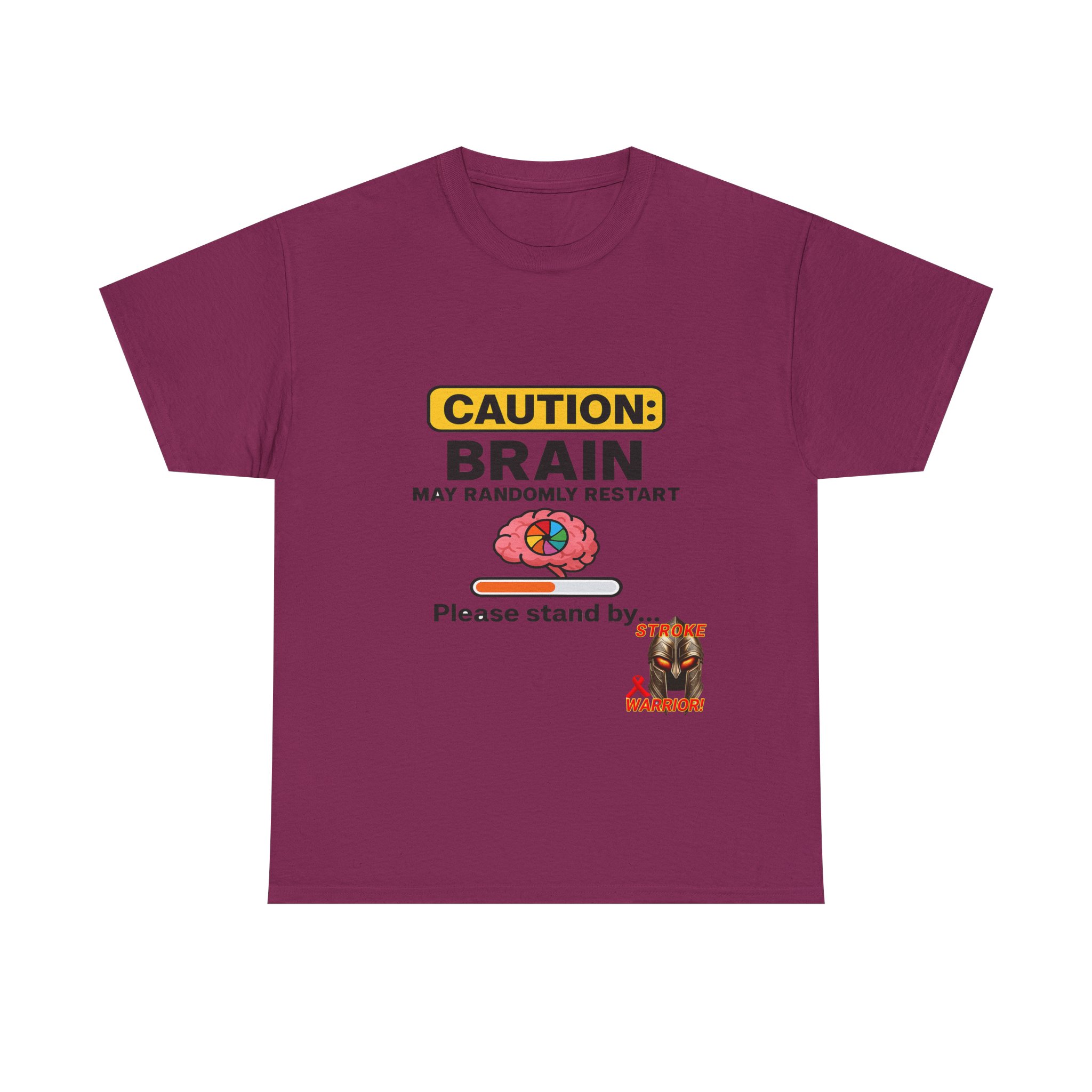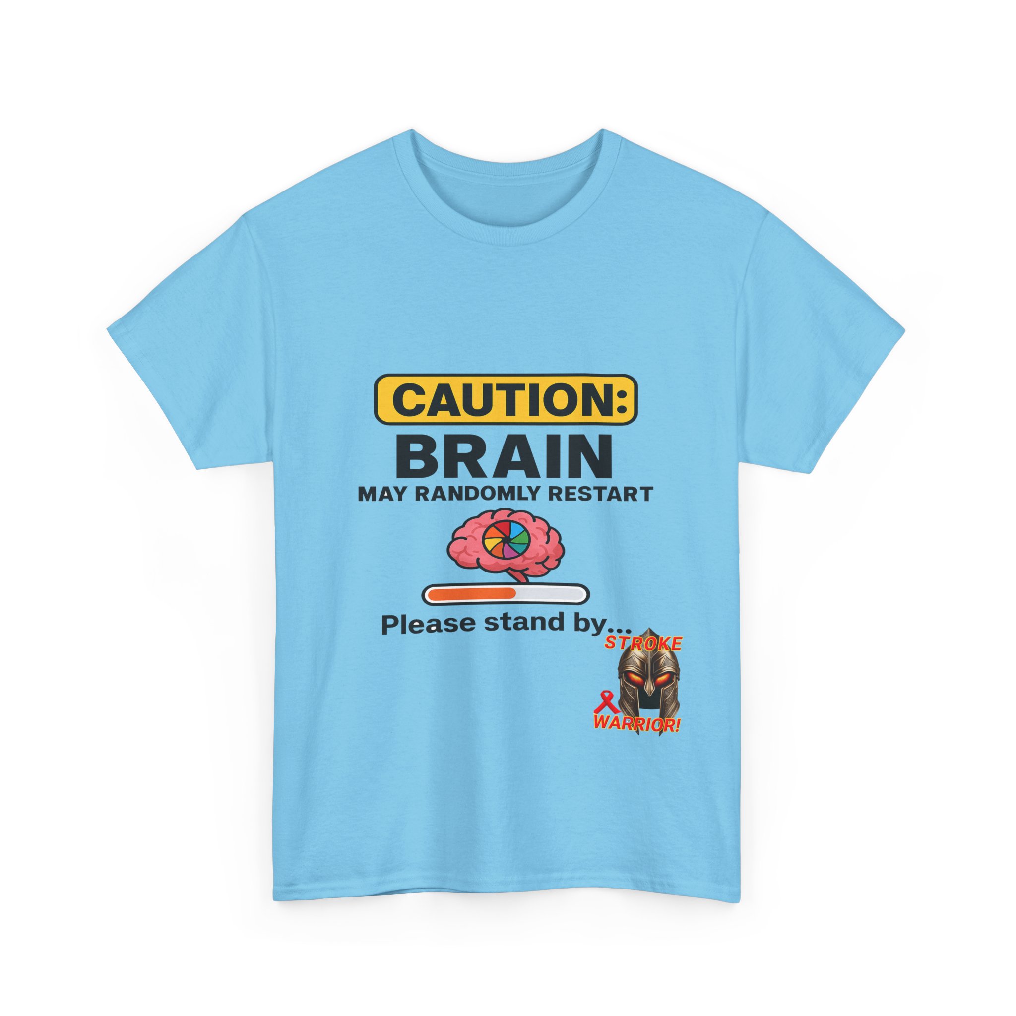 Introducing the “Caution: Brain May Randomly Restart” stroke survivor t-shirt — the perfect mix of humor, resilience, and truth. Whether you’re a stroke warrior yourself or looking for the perfect stroke survivor gift, this tee makes a powerful, personal, and humorous statement. Designed with a cartoon brain, a loading bar, and a classic spinning wheel, it’s a lighthearted way to represent a serious journey.