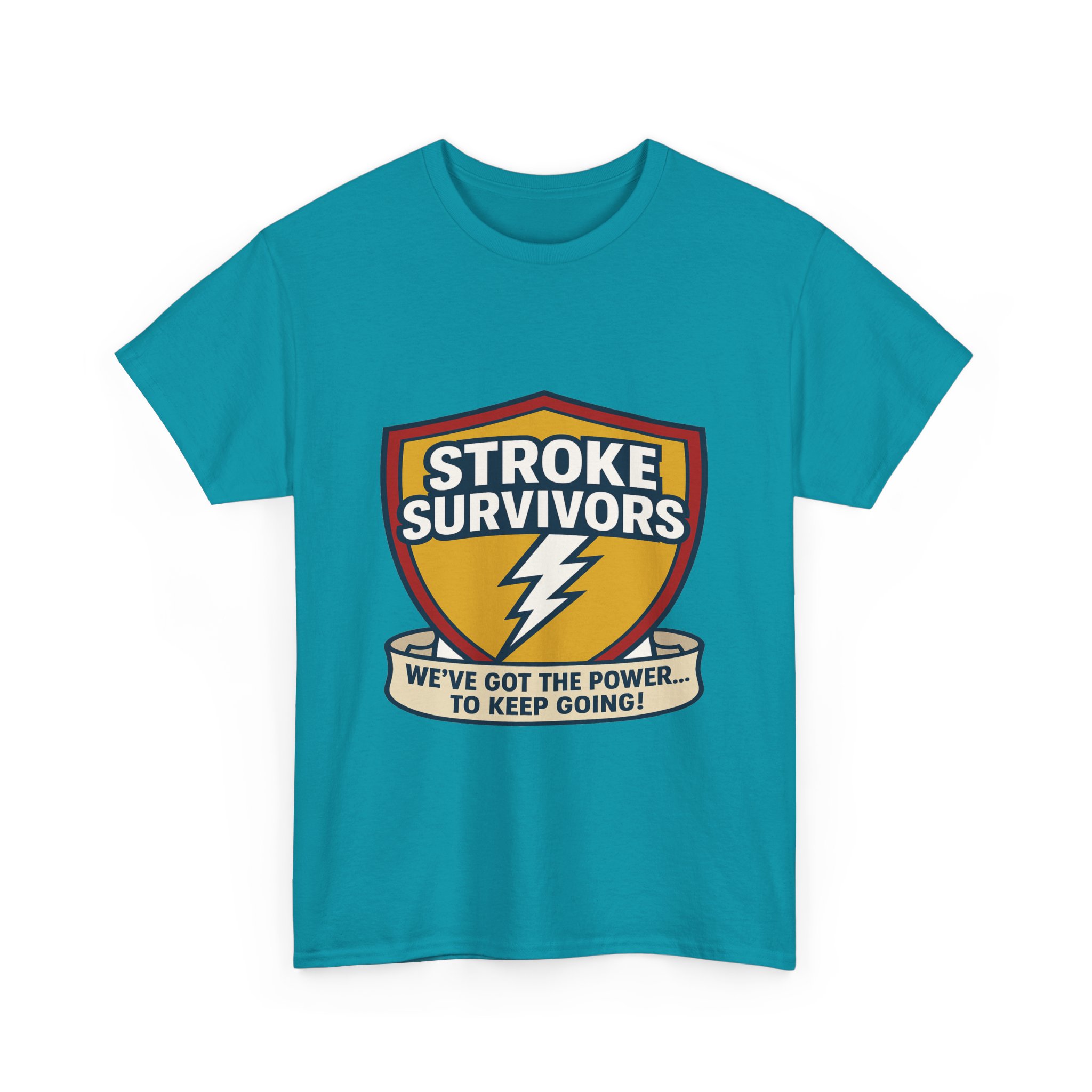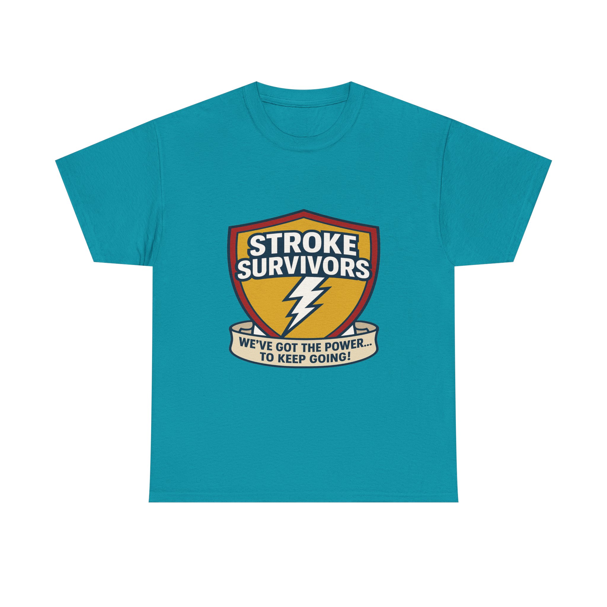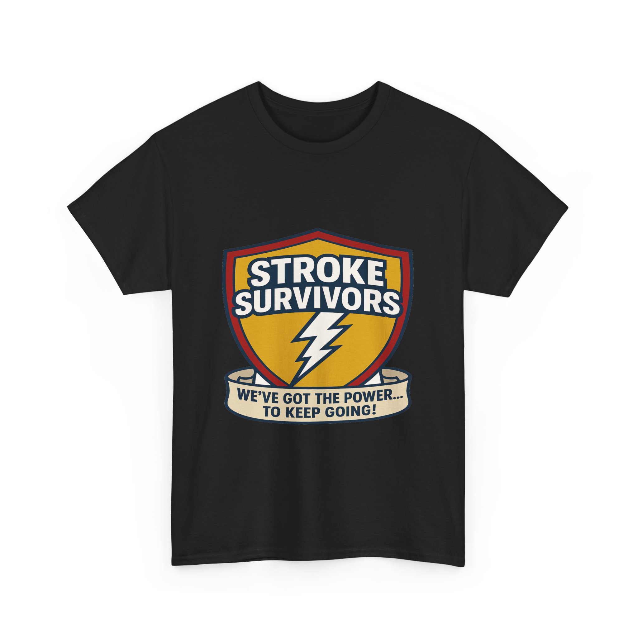 Stroke- Survivors- Shield- T-Shirt – “We’ve- Got- the- Power- to- Keep- Going!