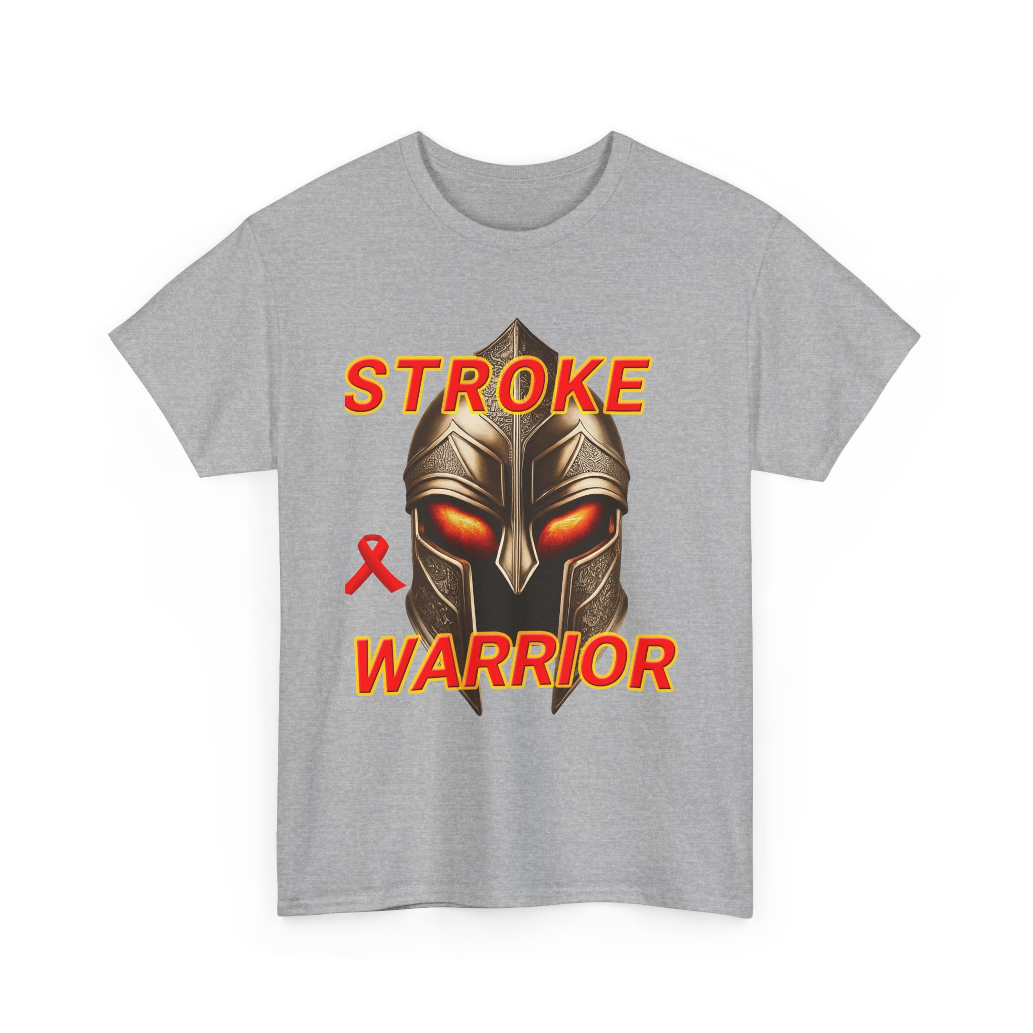 Celebrate strength and resilience with the “Stroke Warrior” Unisex Heavy Cotton Tee. Featuring the bold text “Stroke Warrior” alongside a powerful Spartan warrior helmet and a red stroke ribbon, this shirt represents the determination and courage of stroke survivors. Made from high-quality cotton, this Stroke survivor t-shirt offers both comfort and durability, making it the perfect choice for everyday wear or as a statement of empowerment.