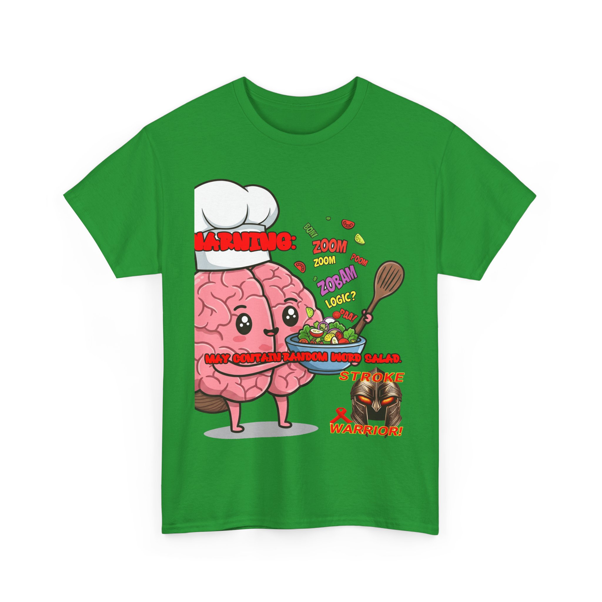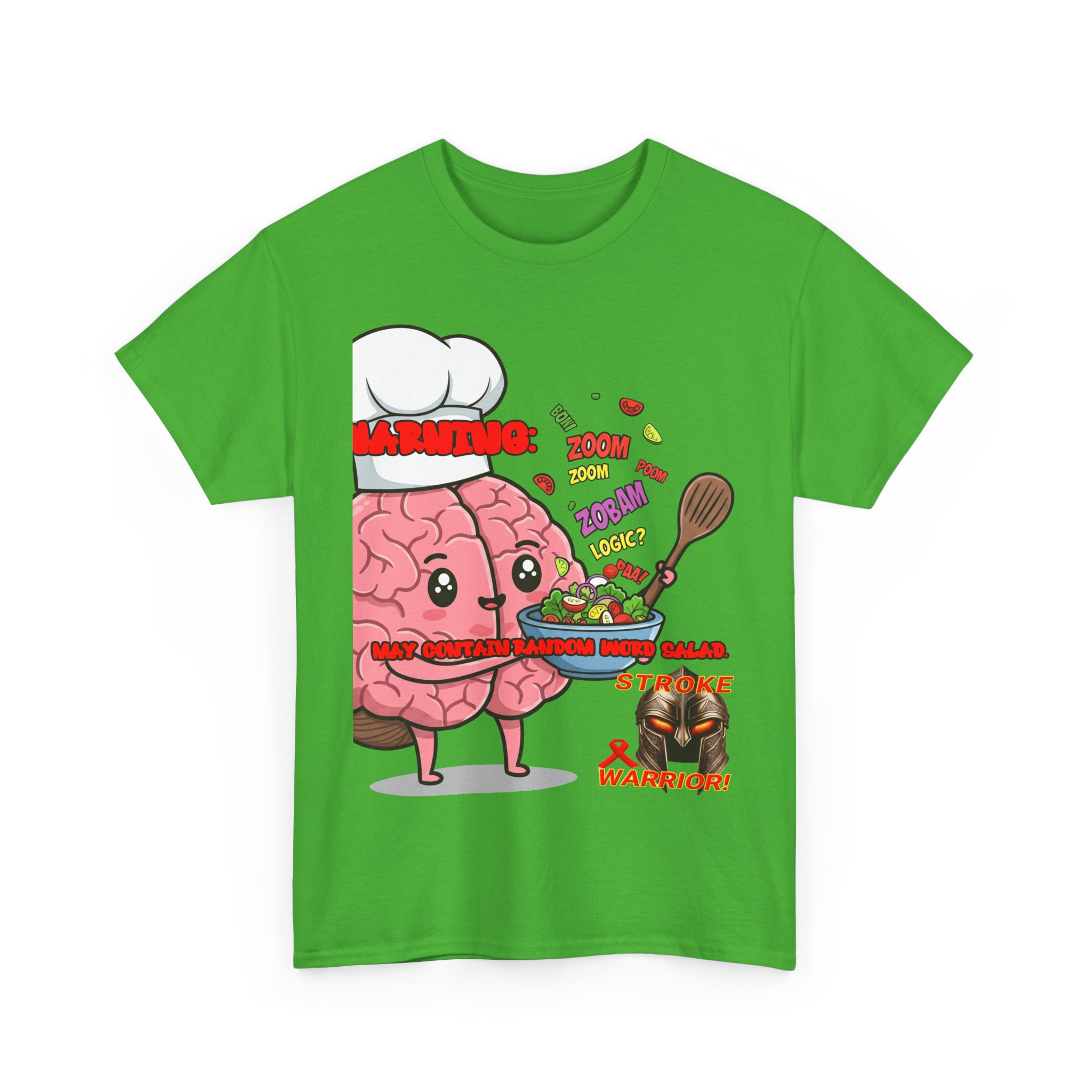 Introducing Word Salad Warrior, a bold, humorous, and deeply empowering design created for those who have stared adversity in the face and refused to blink. This one-of-a-kind graphic features a quirky cartoon brain tossing a chaotic “word salad,” paired with a powerful Spartan warrior mask with glowing eyes. It’s the perfect fusion of comedy and courage – a tribute to the mental fog, speech challenges, and inner battles stroke survivors conquer daily.